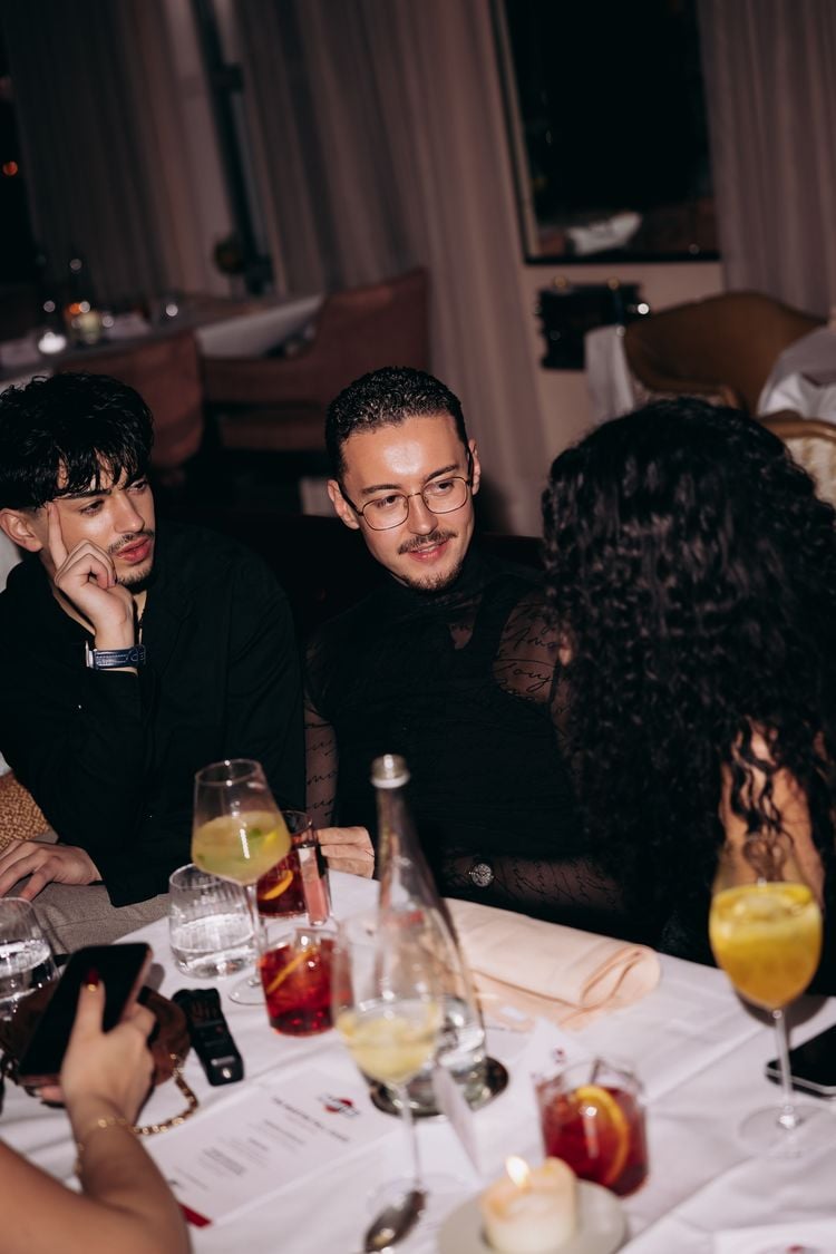 De avond verliep in een ontspannen ritme. De aftrap? Die vond plaats in The Court: de ruimte die het historische karakter van het gebouw duidelijk laat zien. Denk aan hoge plafonds, warm licht. Een ambiance die je automatisch vertraagt. Volgens Omari hoort daar maar één drankje bij: de MARTINI Bianco Spritz. Simpel, fris en luxe genoeg om de toon te zetten.